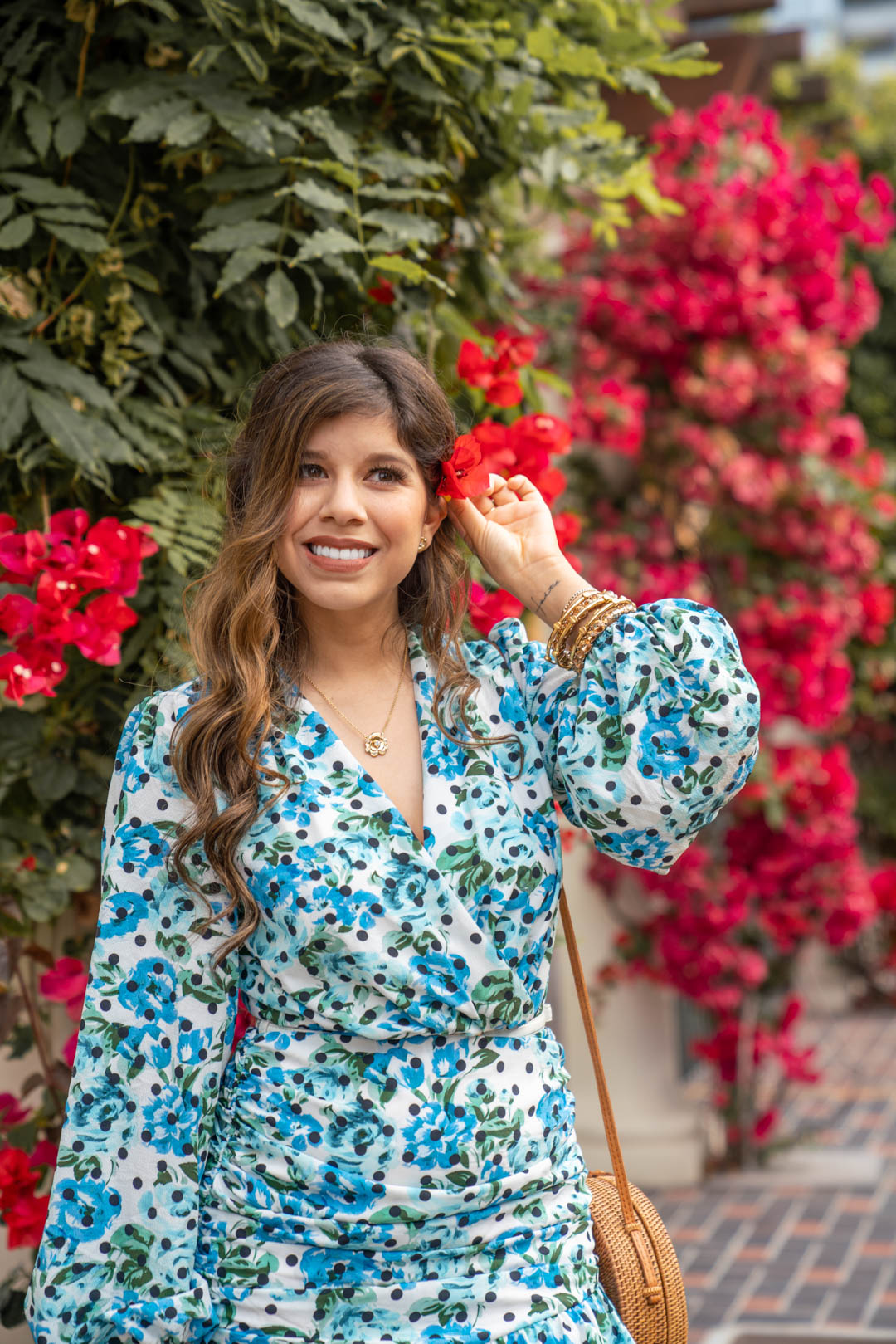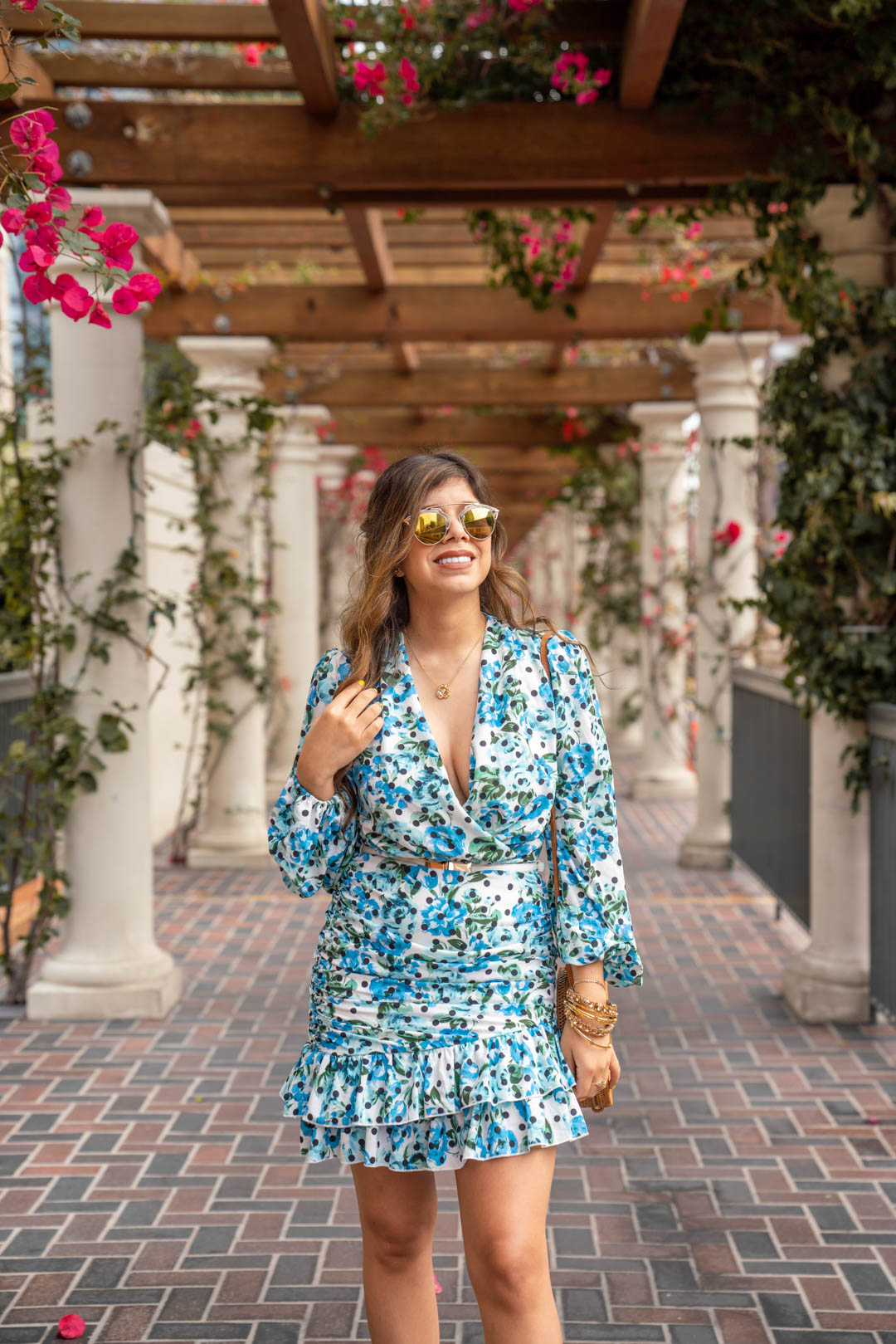 RIVER ISLAND - Blue long sleeve frill ruched mini tea dress REVOLVE - Tony Bianco Freddie Bootie - White Capretto AMAZON - BKpearl 3 pcs Skinny Waist Belt, Women Adjustable Skinny Leather Dress Belt Waistband With Gold Alloy Buckle Francesca's - Mavis Round Rattan Crossbody