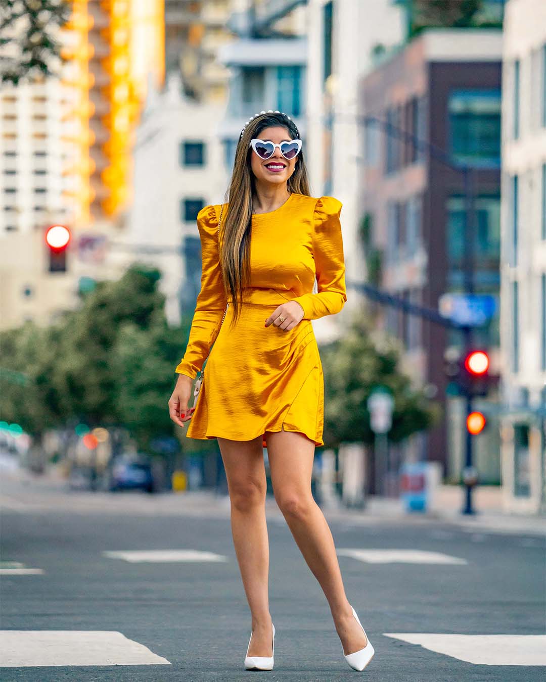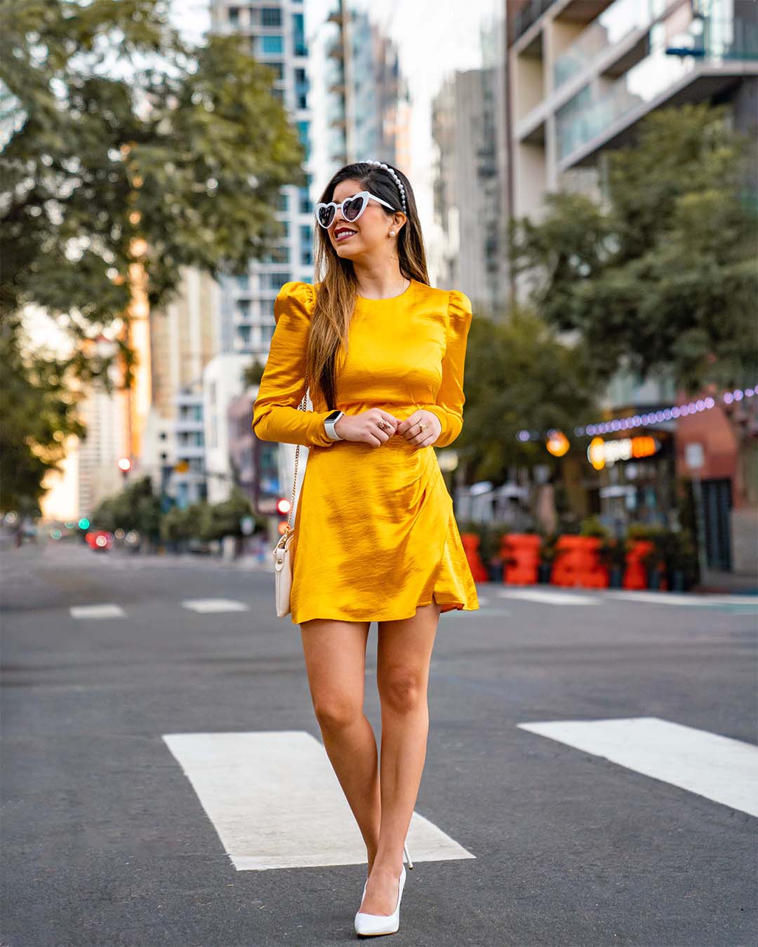 x REVOLVE Krisha Mini Dress Yellow Gold - House of Harlow 1960 Steve Madden - Vala + White Patent
